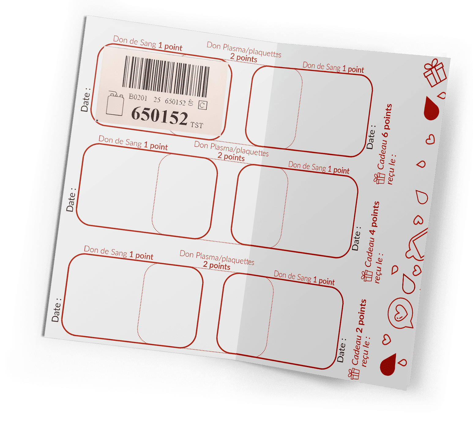 Cette carte est également votre carte post-don. Vous la recevrez lors de votre prochaine collecte.